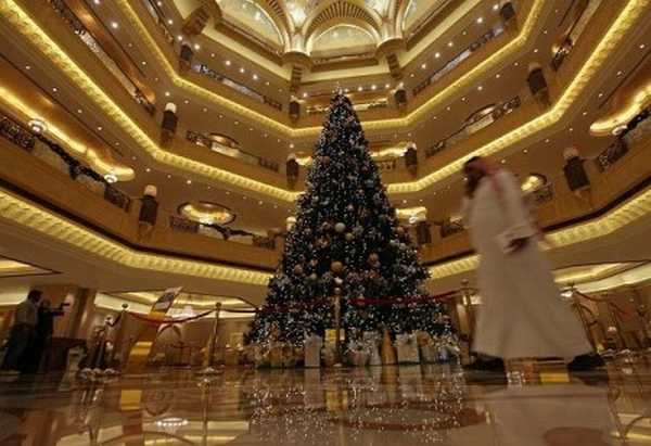 181 gemstone consisting of sapphire, Jambrud, diamonds and other gemstones scattered throughout the Christmas tree. Asked whether the manufacture of luxury Christmas tree amid the Muslim community will not offend Muslims, Hans Olbertz General Manager of Emirates Palace Hotel, assured that this has not happened because he said the UAE is a liberal country that is free.